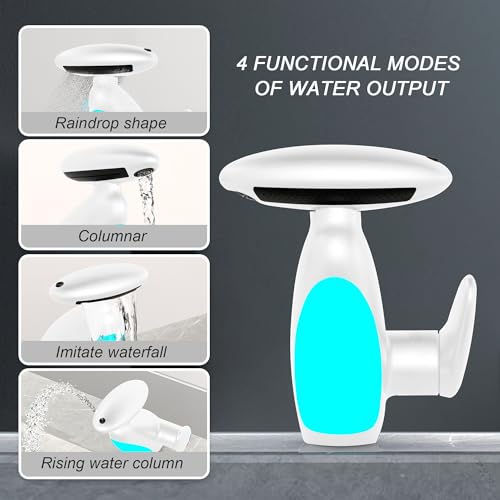 360° Rotating Ambient Light Bathroom Faucet – 4-Way Rotating Pull-Down Spray, Smart Temperature-Changing LED, Modern Bathroom Sink Faucet 9/16″ Hose Cold Start Ceramic Cartridge