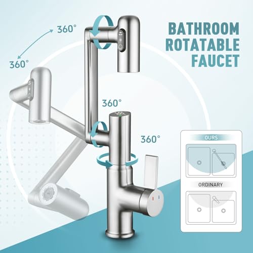 【1080° Rotating Function】XIANPIOO 1 hole bathroom vanity faucet has a three stage swivel design. It bends and folds smoothly, allowing precise adjustment of the spout direction. This reduces the need to bend while washing hair, offering more flexibility than regular faucets and greater convenience for daily sink washing and cleaning