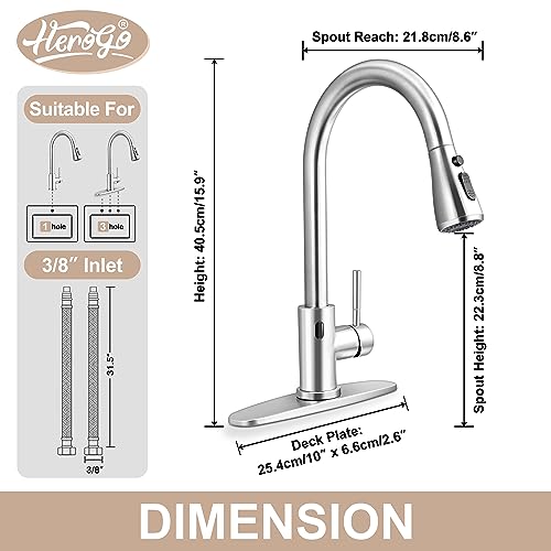 Touchless Kitchen Sink Faucet with Pull Down Sprayer, Herogo Brushed Nickel Stainless Steel Smart Activated Kitchen Faucet with Soap Dispenser, Single Handle Motion Sensor Tap for Farmhouse RV Sink