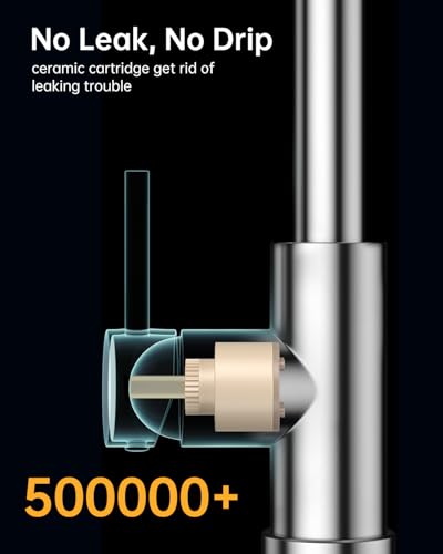 ROBUST AND NO LEAKS: Kitchen faucets touchless constructed with high-quality SUS304 stainless steel, brushed nickel finish resists fingerprints and water spots, premium ceramic cartridge had over 500,000 times open & close tests to make sure no drips or leaks.