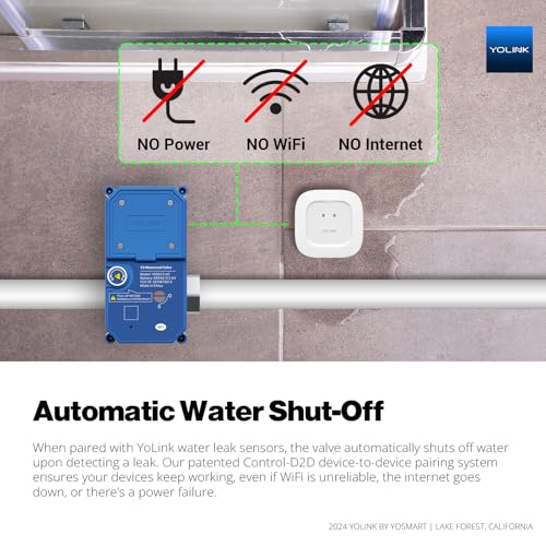 D2D DIRECT PAIRING WITHOUT INTERNET OR AC POWER – Leak sensors can directly trigger the valve to close via YoLink Control-D2D; battery power keeps protection working during outages.