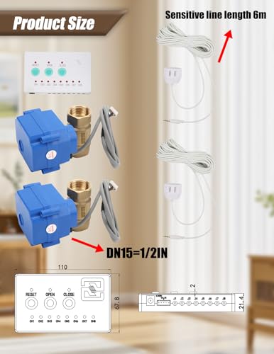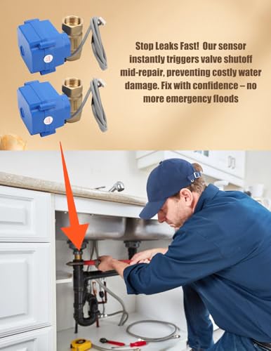 Water Leak Sensor Shut Off Valve System,Automatic Leak Detection & Dual BSP Valves with Smart Alarm for Flood Prevention in Homes, Basements, Laundry Rooms