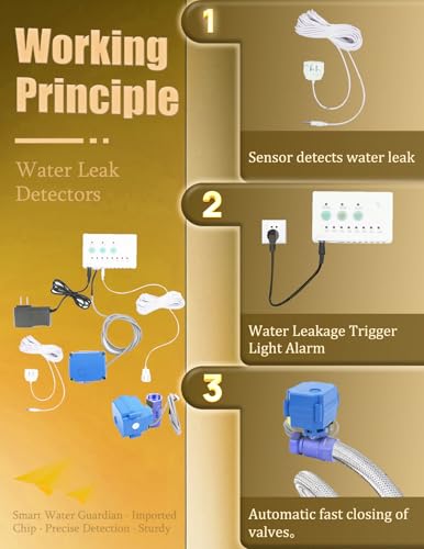 Loud Alarm + Visual Alerts:85dB siren and flashing LEDs notify you immediately.Auto-shutoff prevents flooding even if you’re asleep or away.
