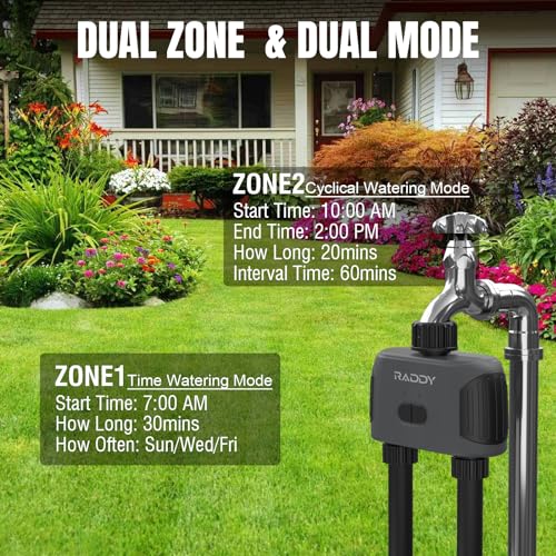 Raddy WS-3 WiFi Water Timer,2 Zones Sprinkler Timer for Garden Hose, Automatic Irrigation System with WiFi Hub, APP Control, Work with AWiFi Hub, Rain Delay for Lawns and Yard,2 Outlets