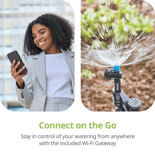 AUTOMATE YOUR WATERING: Control from anywhere with customizable schedules and weather-based watering capabilities; stays connected to your smartphone even if Wi-Fi is interrupted; manual watering options for ultimate control