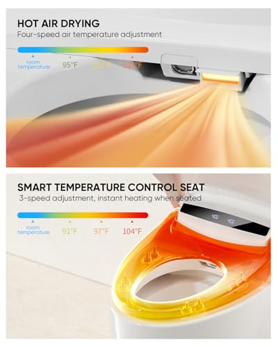 Smart luxuriously Heated Seat: The seat and water temperature are adjustable with four heating levels. The LED display shows the current temperature, offering a comfortable experience