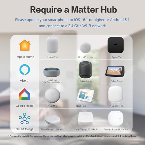 ⚡Required Hub: A Matter-certified hub or controller is required, such as Applee Home, Alexa, and Google Home, and SmartThingss (need to be purchased by yourself)