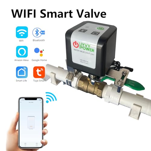 WiFi/Bluetooth Ball Valve Smart Water Shutoff Manipulator with Durable Metal Gear Domotique Controller Compatible Alexa Google Works 2.4 GHz No HUB Needed (TUYA WIFI)