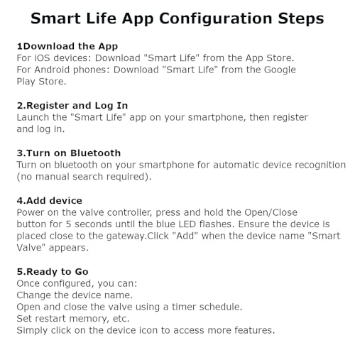 ♥ 【App-Controlled via “TUYA SMART” or “SMART LIFE”】 Remotely control your valve from anywhere at any time using the “TUYA SMART” or “SMART LIFE” app. For the Wi-Fi version, get connected within 1 second thanks to the built-in Bluetooth module. No hub is required, and there are no hidden costs. The ZIGBEE version, however, requires a ZIGBEE 3.0 hub, preferably powered by TUYA or SmartThings. The timer function allows you to set specific on/off schedules for convenience.