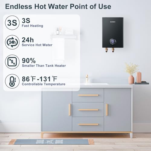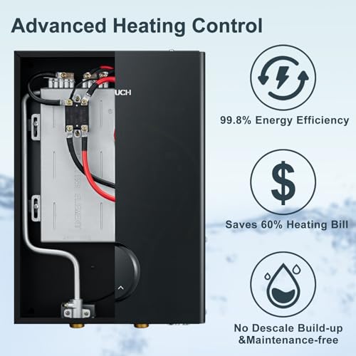 【ENERGY SAVING SMART WATER HEATER】The electric water heater on demand ECO270B adjusts exact power input based on current flow rate and temp setting, for example, less power will be consumed by the tankless water heater electric when you reduce water flow, thus, you get ideal stable temp instead of scalding hot, which ensures comfortable experience and optimal energy efficiency,saving 50% electric charge compared to a typical tank heater