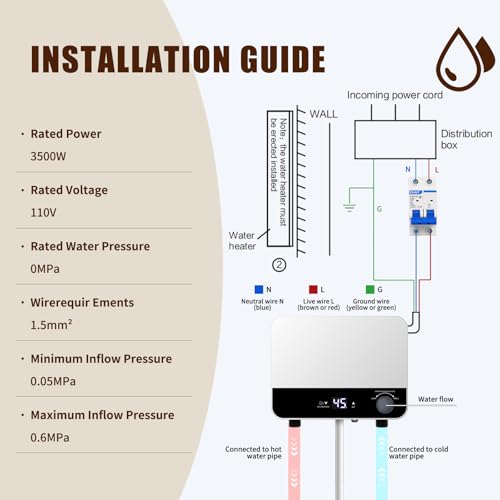 SAFETY PROTECTION- This water heater adopts an integrated cast aluminum heating design inside, completely separating the electrical system and fluid system to prevent leakage and water pipe corrosion, while greatly improving safety. With powerful features such as dual electric walls, anti dry burning, overvoltage protection, grounding protection, constant temperature and anti scalding, IPX4 waterproofing, and over temperature protection, you can confidently provide safe hot water as needed.